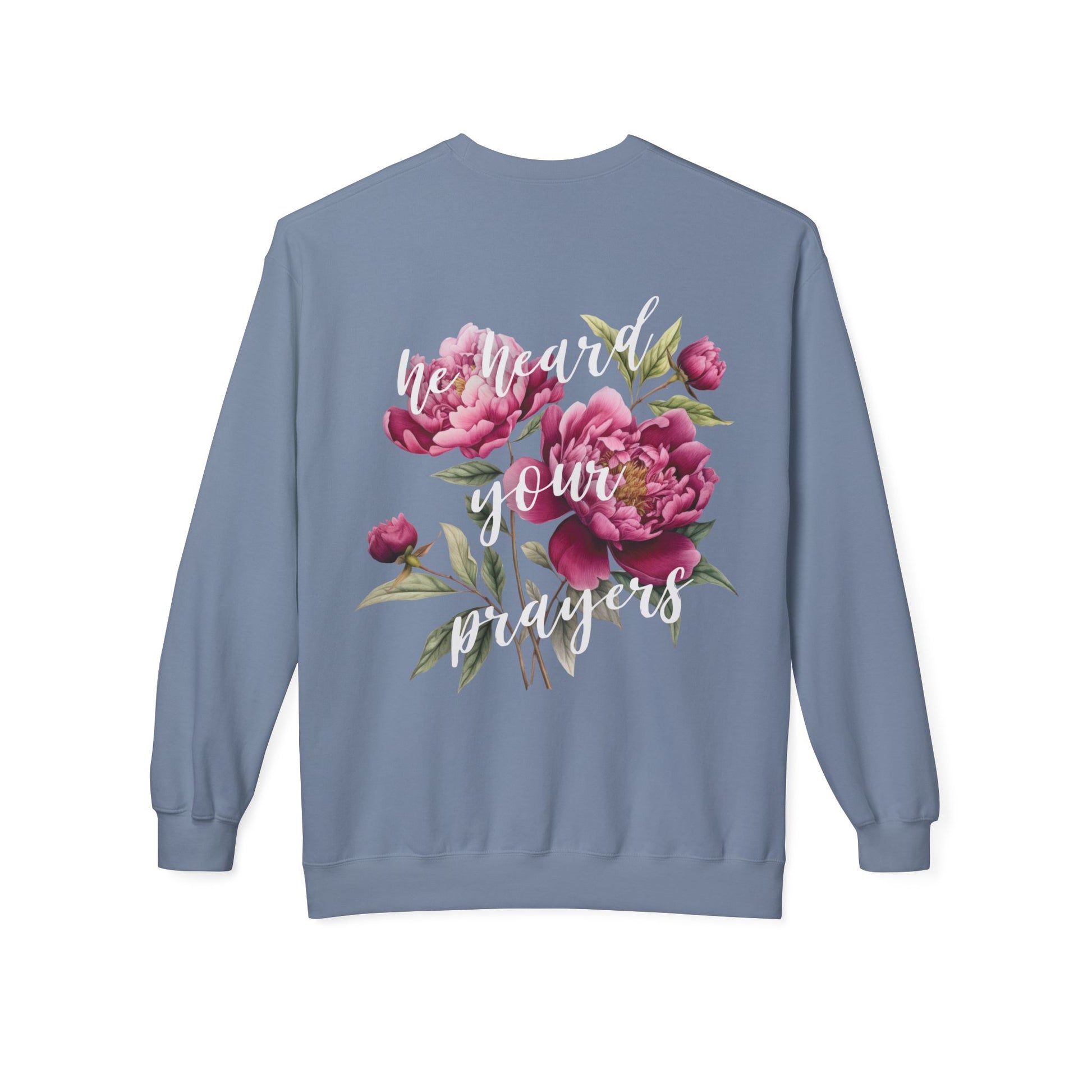 Featuring a floral back design with the gentle wrods "her heard your prayers," this peice is made for quiet moments, the waiting season, and the everyday faith walk. A touch of inspiration to your casual outfits. This cozy sweatshirt is ideal for those who appreciate comfortable and stylish clothing with a positive message. Great for everyday wear or as a thoughtful gift for loved ones.